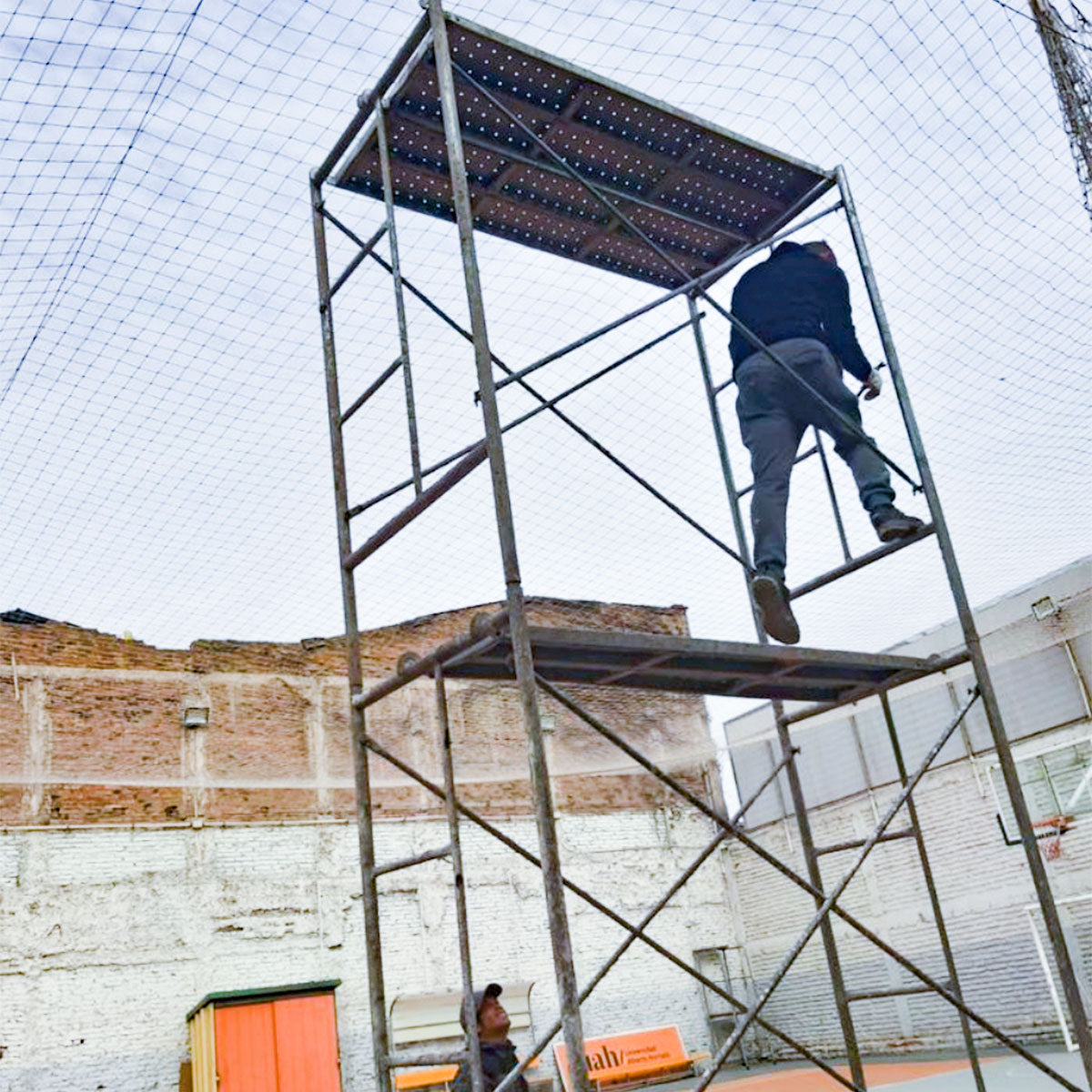 El mantenimiento asegura que las instalaciones continúen siendo seguras para la práctica del deporte, y consiste en: Ajuste en la ubicación de mallas (subir o bajar), Corrección de cuadros de mallas instaladas, Tensar cables que se han soltado por el uso.